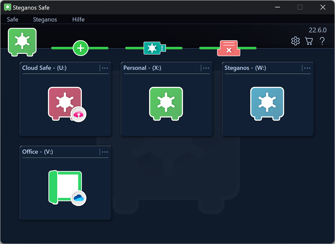 With the new Steganos Data Safe you are relying on a new, future-oriented technology that will enable us to offer you cross-platform encryption in future updates. You can set up a digital data safe in no time at all and store all your documents there securely. Thanks to highly secure encryption and two-factor authentication of your various safes, thieves and snoops have no access whatsoever. Only you can access your archived documents. Security as it should be and future-proof for future expansions and parallel use on other operating systems.